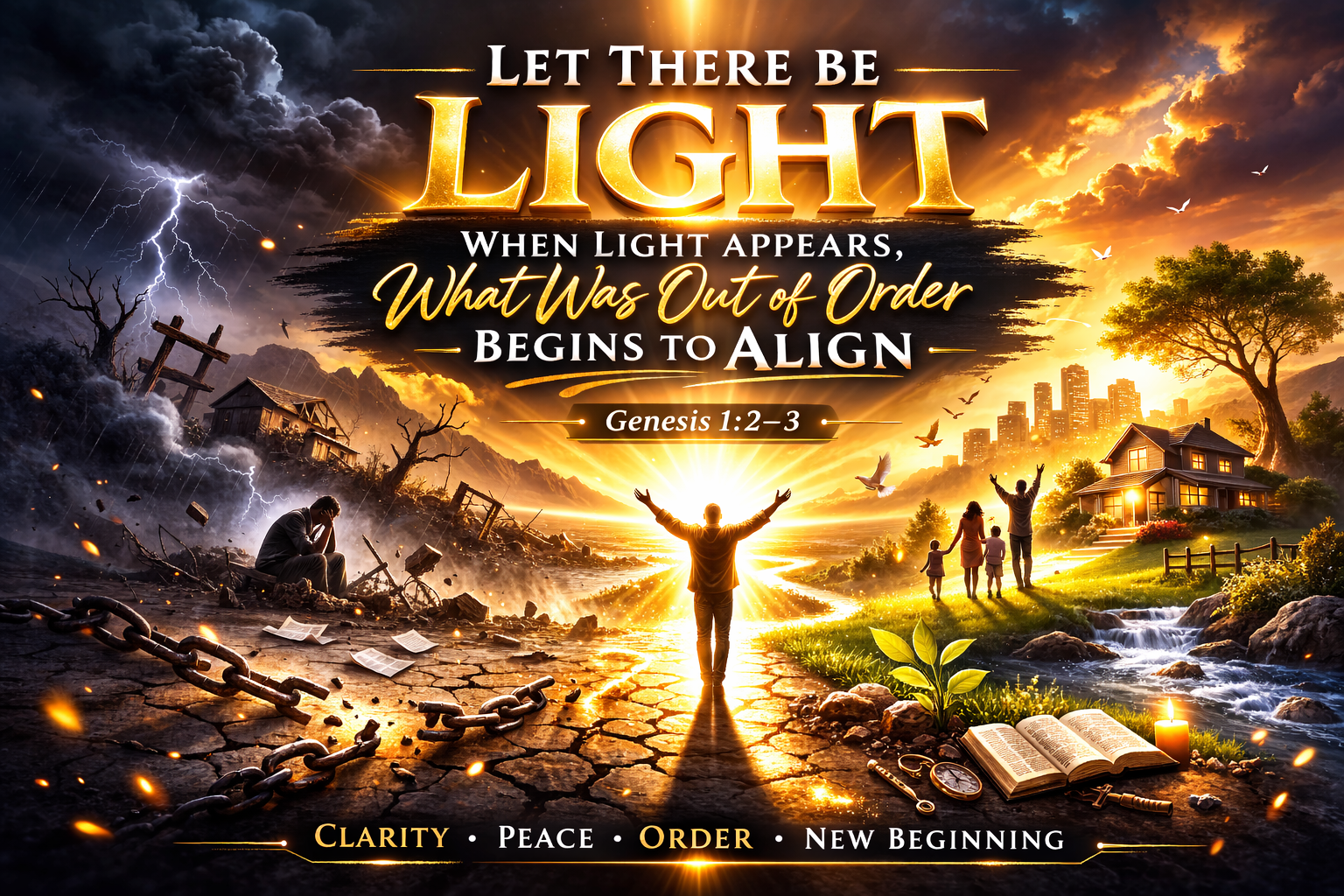 This is not a weak prayer but a violent spiritual demand for divine order. When you ask for light, you are asking God for the kind of intervention that makes disorder uncomfortable. So do not settle around what is shapeless or adapt to confusion. Stand before God with holy boldness and cry, โOver this matter, let there be light.โ Let there be light until there is order. Let there be light until there is clarity. Let there be light until there is movement. Let there be light until what has been without form begins to reflect the hand of God.